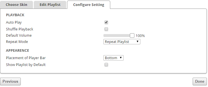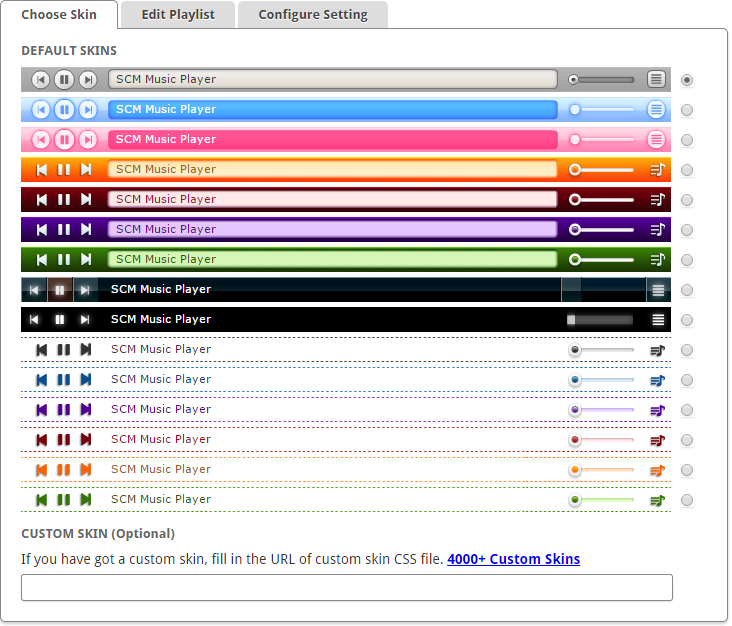 2. Akan muncul tampilan seperti gambar di atas ini dan di menu “Choose Skin” anda dapat memilih warna background yang anda inginkan dan lanjut dengan kllik “Edit Playlist”